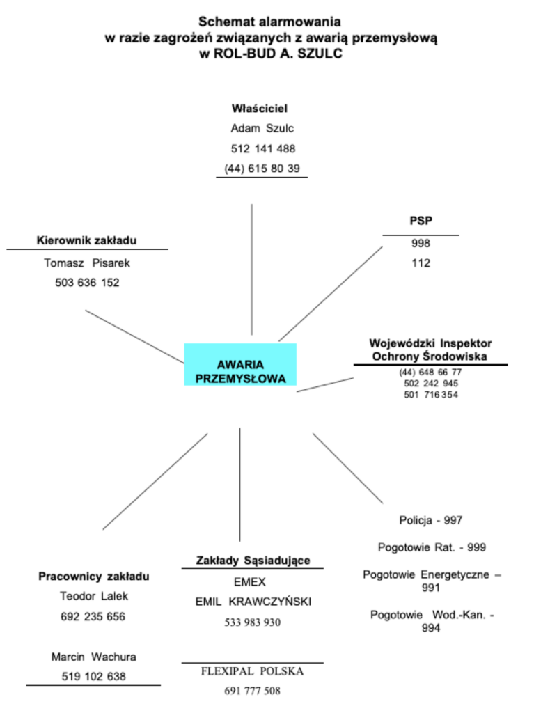 Rozlewnia Gazu Płynnego/Zakład w Ignacowie firmy ROL-BUD ADAM SZULC, będąc zakładem zaliczonym do zakładów o zwiększonym ryzyku powstania awarii, musi posiadać opracowany i uzgodniony z właściwymi władzami Program Zapobiegania Poważnym Awariom.
